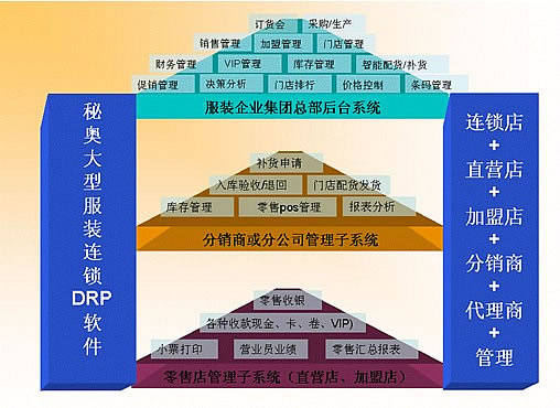秘奧服裝連鎖+直營店+加盟店+分銷DRP軟件從采購/生產到逐級審批到倉庫配送發(fā)貨執(zhí)行到商品的入庫出庫(退回)和零售店調貨管理,完全符合服裝連鎖和分銷行業(yè)規(guī)范,加上業(yè)務處理過程中的各種權限控制和數(shù)量及成本等控制,服裝企業(yè)只需要嚴格按照規(guī)范執(zhí)行,企業(yè)的物流、資金流、現(xiàn)金流控制便可輕松把握。